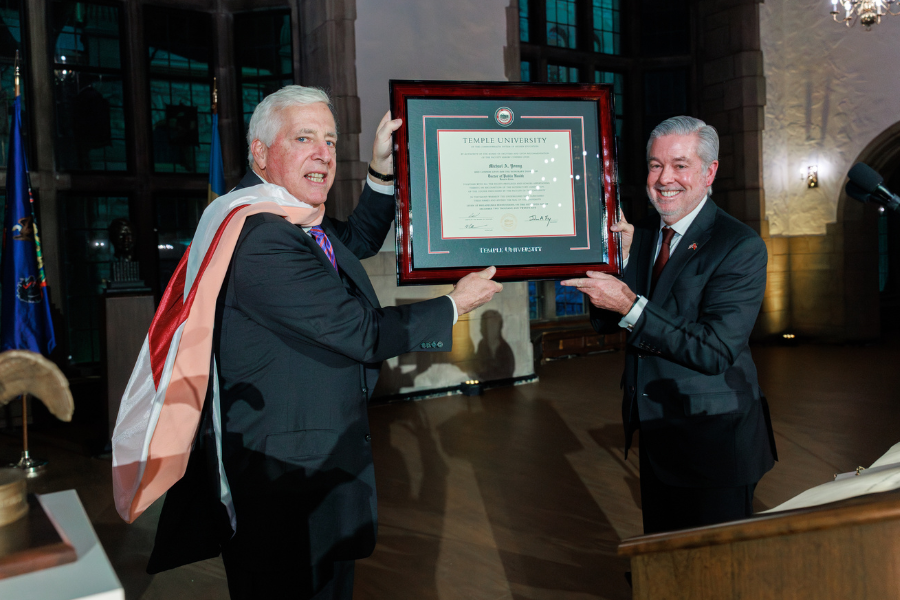 “Long before I knew who Mike was, I knew of him—as the man who saved Grady Memorial Hospital, Atlanta’s only Level I Trauma Center,” Dean Goldberg said. “When I heard that man was coming to Temple, I was grateful beyond words, because I knew exactly what that meant.”
